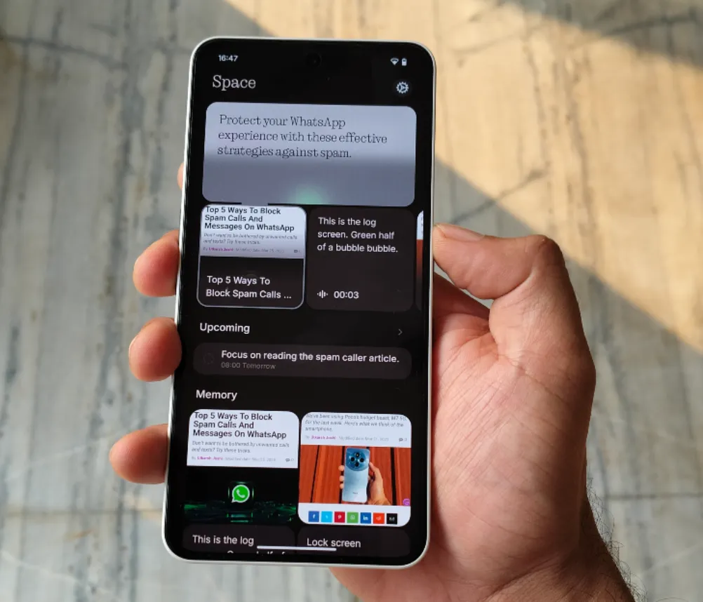 Need a custom productivity tool? A specialized reminder system? A mood tracker that connects with your playlists? With Essential Apps, you can simply describe it, and the platform creates it within seconds. These personalized tools live right on the home screen, shaping a phone that evolves with each new task or idea.